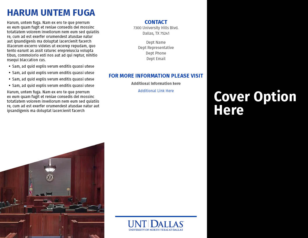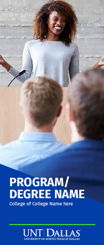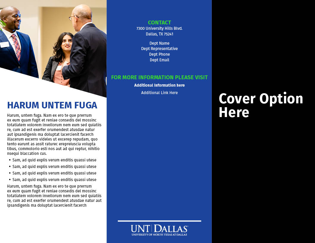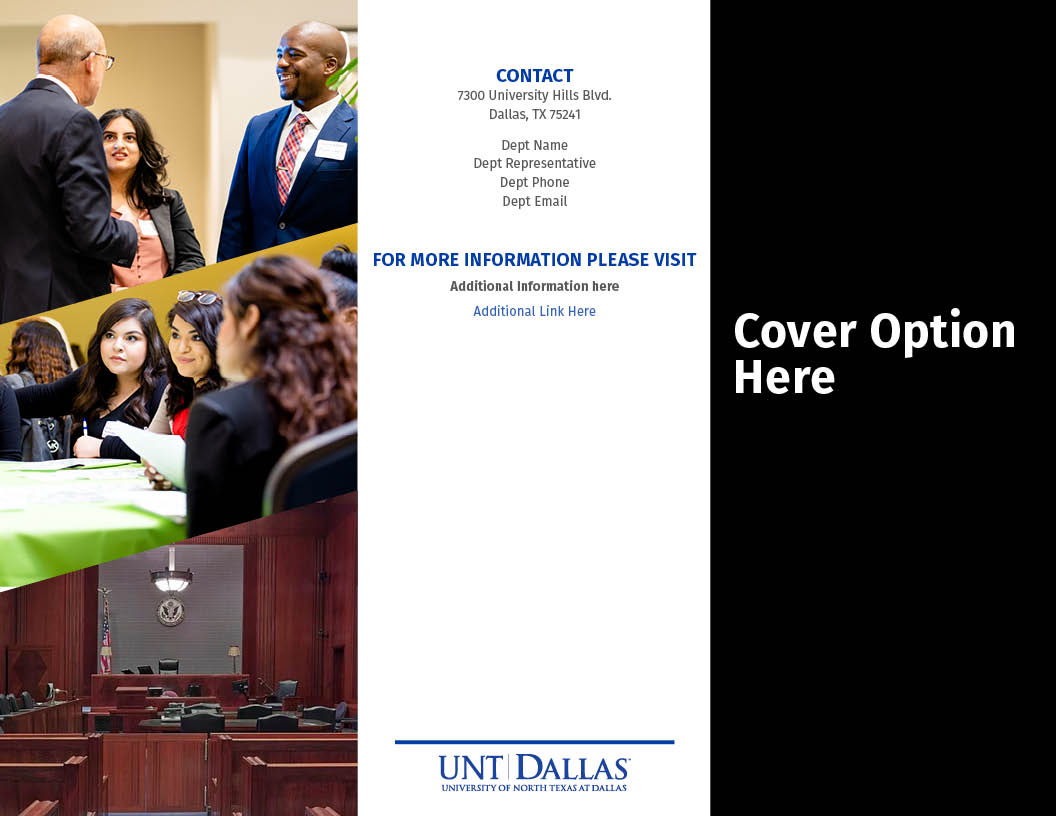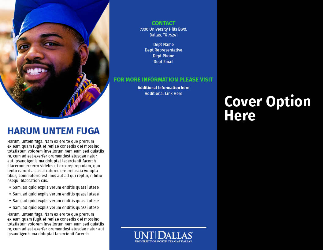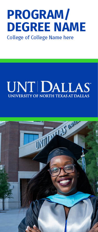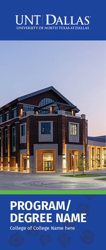 Send your template choices, completed text, and photo links to thomas.mcmillan@untdallas.edu. Allow 4 to 5 weeks for formatting, proofing, printing and delivery.
