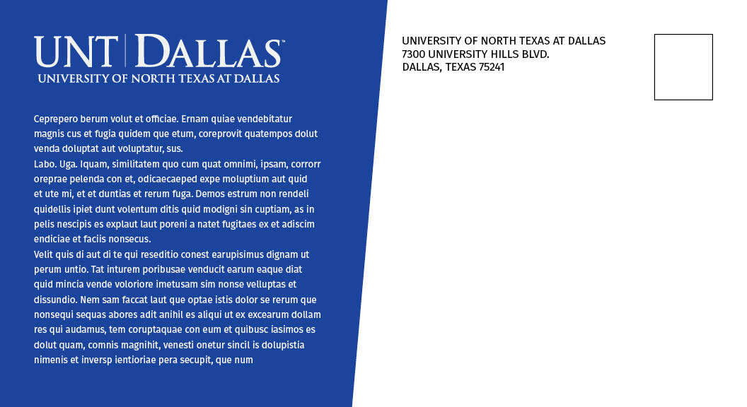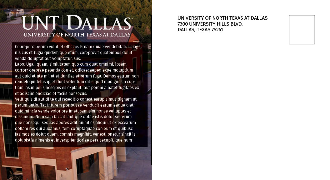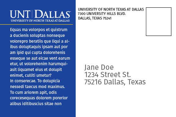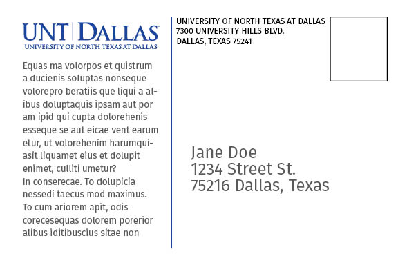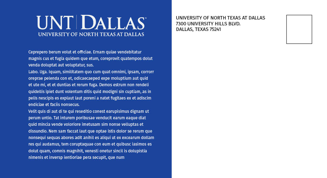 If you have only minor revisions to an existing postcard, mark those revisions in red on a copy of the brochure and email to thomas.mcmillan@untdallas.edu