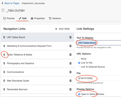 - You can re-arrange, re-label, or re-link any of the items in your sidenav on this