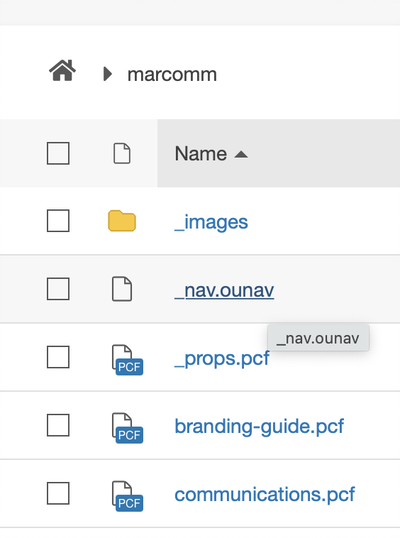 The sidenav listing is customizable in the _nav.ounav file found in every folder in the CMS. It dictates what menu appears on every page