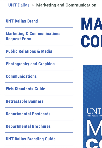 The sidenav appears on the left side of interior pages. It is a map of the pages contained