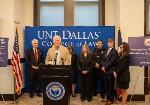 Full StoryThe unprecedented increase in acts and threats of violence prompted Sen. John Cornyn (R-TX) to gather legal and law enforcement experts, survivors, and judicial safety advocates together at the UNT Dallas College of Law on June 25, 2024.