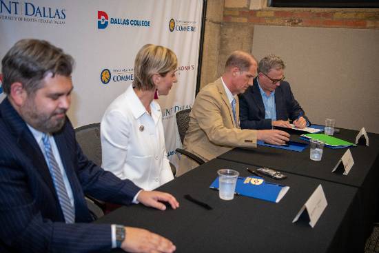 Leaders from UNT Dallas, Texas A&M University-Commerce, Texas Woman’s University (TWU) and Dallas College signed the collaborative agreement on Thursday, July 25, 2024. Through the agreement, the four higher education partners have committed to a shared governance structure, academic alignment, real-time credit-to-degree technology, coordinated advising and student success services, and data sharing.