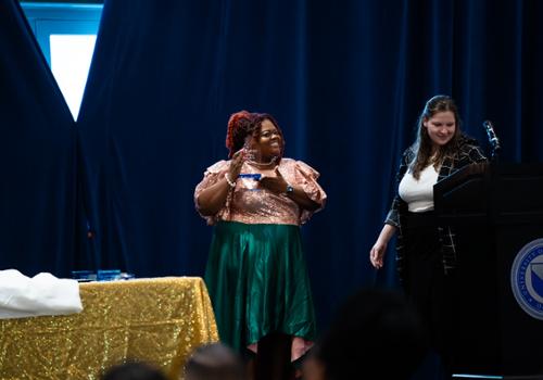 Last week, Jessica took the stage to share her story with attendees of the Advancing Socioeconomic Mobility conference hosted by UNT Dallas at the Statler Hotel. The audience listened intently as she described overcoming hurdles and feeling empowered by her UNT experience.