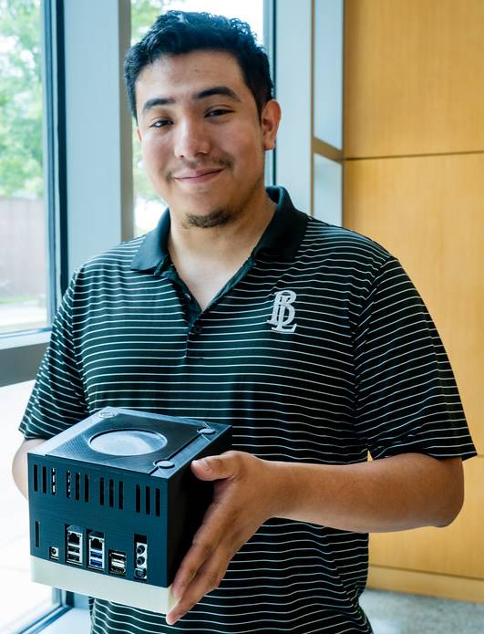 Alex Morales, who built a fully functional game console, aspires to be a video game designer. He walked classmates through his lengthy, highly detailed process from beginning to end, including the initial concept, dimensions, hardware, software, ports, memory (RAM), and solid-state drive (SSD). The finished product resembled a Nintendo GameCube.
